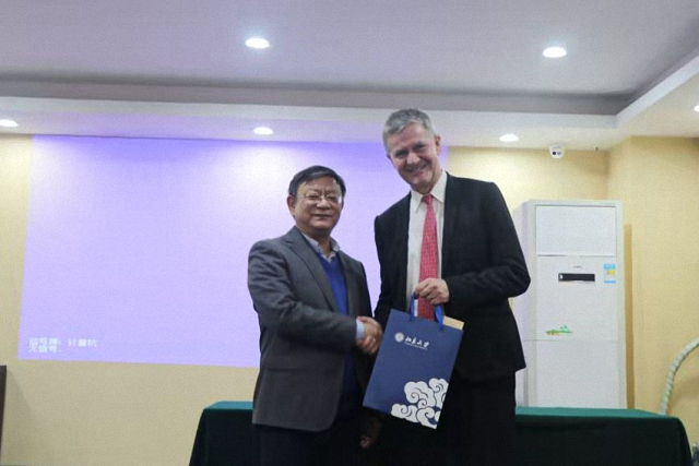 唐士其院长致欢迎辞并向索尔海姆先生赠送礼物