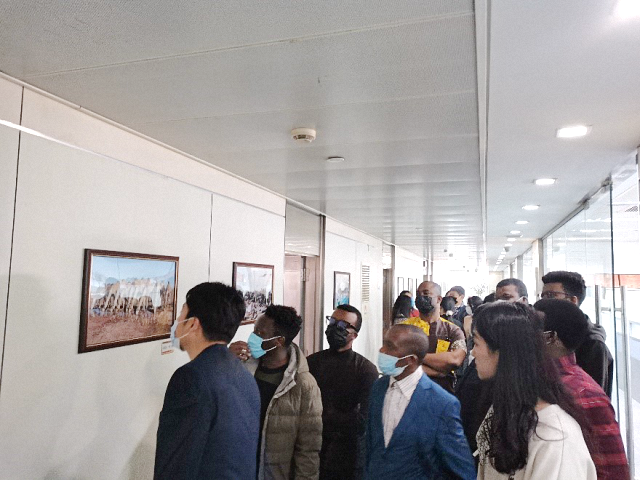 活动会分为两个环节。第一环节为参观环节,中非发展基金的戴星伟先生带领北京大学的师生们参观了中非发展基金的总部大楼。在挂满非洲各国照片的纪念走廊上,戴星伟先生热情地介绍了每张照片背后的故事,特别是中非发展基金参与投资建设的合作项目,并积极解答同学们的问题,气氛十分热烈。