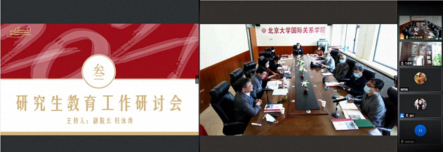 为深入学习和领会北京大学研究生教育会议精神,进一步做好研究生培养工作,2021年1月22日,国际关系学院通过视频会议方式召开研究生教育工作会议,院长唐士其、党委书记初晓波、各专业主任及大部分教师参加会议。会议由副院长归泳涛主持。