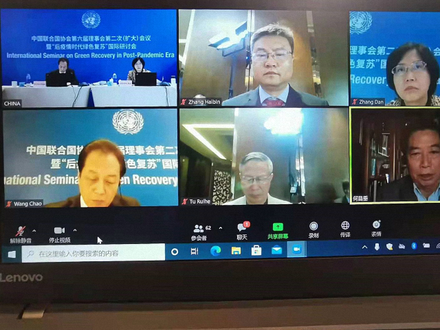 中国联合国协会2021年3月30日在北京举办“后疫情时代绿色复苏”国际研讨会。联合国驻华协调员常启德、联合国贸易与发展会议全球化和发展战略局局长理查德·科祖尔—赖特、联合国环境署驻华代表涂瑞和等联合国机构官员和中外专家学者120余人以线上线下结合的方式参会,从全球环境治理和全球经济治理的角度,探讨后疫情时代的发展方向。中国联合国协会会长、中国人民外交学会会长王超主持研讨会。
