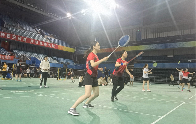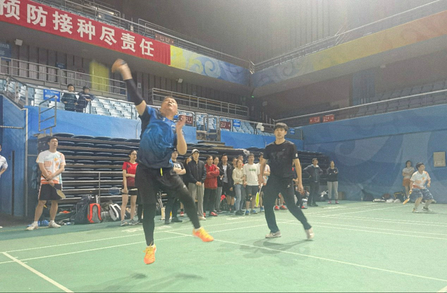 4月10日首先迎来甲组组内争霸。李老师纵横谋划制定战略目标“赢数学、拼光华”,其他尽力而为。第一场对阵医学,首场比赛国关男单选手黄浩左手持拍出其不意,潇潇洒洒地败给医学院强悍的对手。作为一个理性的博士生,他并未受到这场非对称竞技中落败的打击,下场后放下球拍给队员们填表、订餐、买饮料,充分保障了粮草先行。最强混双阵容曹继森和闫岩老师出战,闫老师镇守前场,球过网即击回,曹继森在后场反应敏捷出手灵活,双剑合璧完胜对手。男双高清宇伍子涵两位新队员面容清俊身材修长,凭借出色的体力和默契的配合与对方的实力选手你来我往交战数十回合,最终以两分之差惜败对手。第一场比赛国关遗憾败于医学手下。