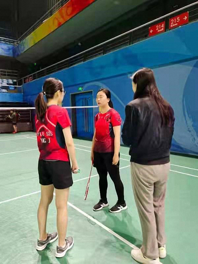 女单曹宝萍老师热身完毕,正往球场上迈步,又听到对方申请女单弃权。