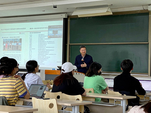 下午四点,宣讲会正式开始。首先,张海滨老师从IO&IPP专业的重要性、特色、优势及录取要求等方面进行了全面介绍。他强调,国际性、交叉性和应用性三位一体是该专业的最大特色。他最后指出,在当前世界面临百年未有之大变局和中国前所未有走近世界舞台中央的时代背景下,捍卫多边主义,坚持以联合国宪章的基本原则为基础的国际秩序比以往任何时候都更加重要,我们加快培养国际组织和全球治理人才的需求比历史上任何时候都更加迫切。希望同学们以全球视野和中国情怀积极加入国际组织与国际公共政策项目,为世界更加繁荣和美好贡献自己的力量。张海滨老师语重心长、深入浅出、幽默风趣的风格不时引起同学们的笑声和掌声。