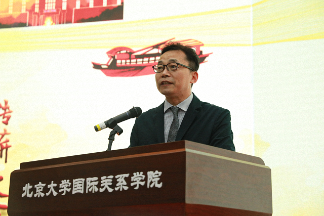 2021年5月15日上午,国际关系学院第十八届国关文化节开幕式在学院秋林报告厅举行。本次文化节以“关风云寰宇,传薪火百年”为主题,邀请中国国际共运史学会顾问、北京大学国际关系学院教授黄宗良,中日友好协会常务副会长、中国前驻日大使、学院客座教授程永华出席开幕式并做主题报告。学院老教授王炳元、院长唐士其,党委书记初晓波,党委副书记祝诣博以及校内中外青年代表参加。开幕式由初晓波主持。
