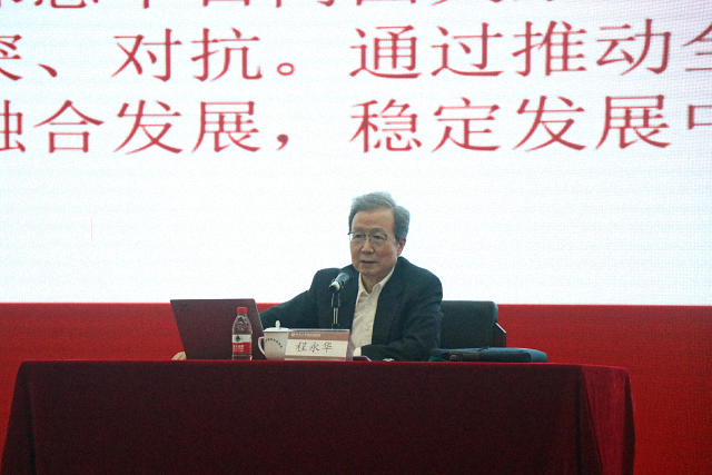 黄宗良发表题为“追求‘三位一体’:把自己的专业、职业融入党的事业中”的演讲。他认为,研究国际政治首先要读懂中国政治,其中非常重要的就是中国共产党的历史文化。他分析了爱国关天下的政治文化内涵,以此激励同学们把理论与实践相结合,投入到党的事业与国际政治研究当中去。展望未来,他对中国特色社会主义的发展前景表示充分的信心与十足的期待,这一信心来自于中国共产党坚持的以人民为中心的发展理念、科学发展理念以及构建人类命运共同体思想的正确性。