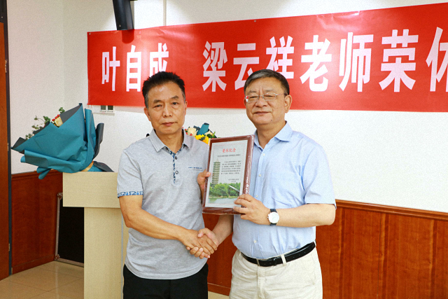 (唐士其院长为梁云祥教授颁发荣休纪念证)
