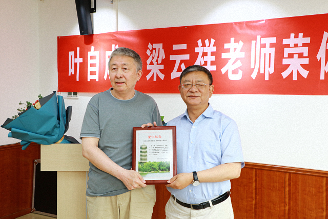 (唐士其院长为叶自成教授颁发荣休纪念证)