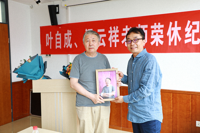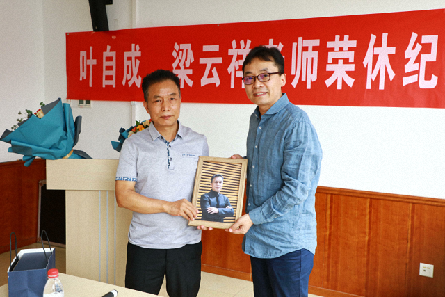 最后,初晓波代表学院向叶老师、梁老师赠送了同事们为两位老师精心制作的肖像照片和纪念礼物。
