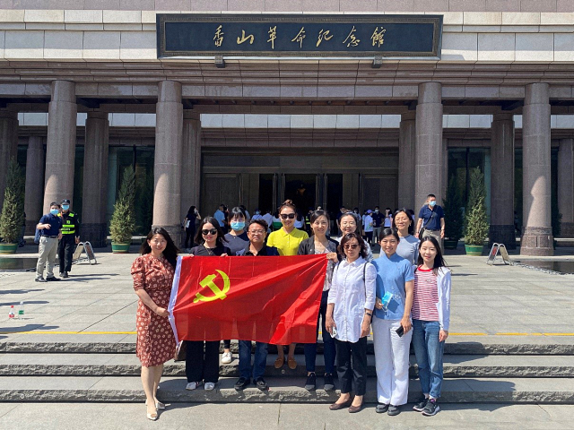值此建党百年之际,为贯彻落实习近平总书记在党史学习教育动员大会上的重要讲话精神,扎实开展党史学习教育,巩固“不忘初心,牢记使命”主题教育成果,增强党员同志守初心、担使命的责任感和使命感,2021年6月1日,国际关系学院行政党支部教工党员和群众一行十余人赴香山革命纪念地开展党史教育。