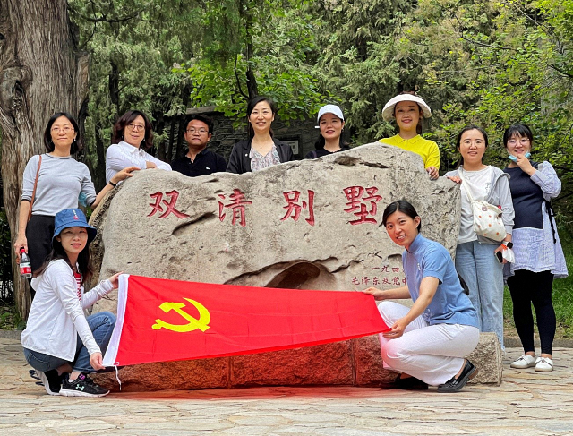 其后,老师们前往香山革命旧址双清别墅参观,追寻领袖革命足迹,感受红色情怀。双清别墅是中国共产党“进京赶考”第一站,曾是中共中央的指挥中心,见证了中国革命走向胜利的光荣历程。毛泽东同志居住在双清别墅期间,正值解放战争行将胜利、新中国即将诞生的历史转折之际。在这里,毛泽东同志谋划和指挥了一系列扭转中国命运、决定中国前途的重大事件,指挥了渡江战役,筹备了新政协,筹建了新中国,写下了《人民解放军占领南京》等脍炙人口的不朽诗篇。老一辈领导人求真务实、锲而不舍的革命精神和艰苦朴素的优良作风深深激励了老师们,更督促党员们要始终保持奋发有为的进取精神,牢记初心使命,从党的百年伟大奋斗历程中汲取继续前进的智慧和力量。