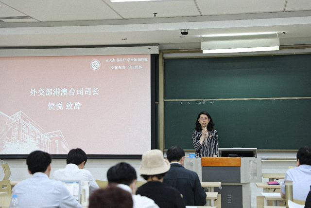 侯悦在随后的发言中对学院党委对本次活动的大力支持和精心安排表示感谢。她指出,外交部港澳台司坚决贯彻党中央和外交部党委部署,把党史学习教育作为贯穿全年的重大政治任务来抓,聚焦学党史、悟思想、办实事、开新局的总要求,开展了一系列形式多样的学习教育活动,引导党员干部强化理论武装,砥砺初心使命,弘扬优良传统,立足本职担当作为,希望能够加强和北京大学国际关系学院的联系,为外交事业培养和输送更多优秀人才。