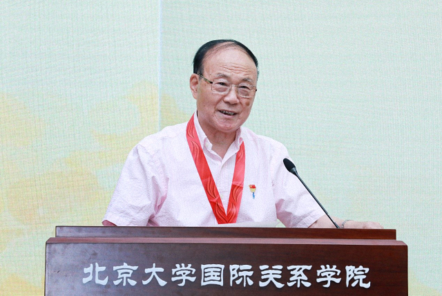 初晓波代表学院党委致辞。他首先对获颁纪念章的各位老党员前辈表示衷心的祝贺。初晓波回顾了老教授们在学院工作生活的点滴岁月,赞扬老党员同志是学院师生的骄傲、榜样和楷模,为学院的建设发展做出了突出贡献。他们的党性修养、品行人格、学风文风、担当作为既是学院精神和传统的见证,更是所有国关人最为宝贵的财富。他希望学院广大师生能够接过前辈们手中的接力棒,汲取力量,砥砺前行,发扬优良传统,团结奋进创新。最后,初晓波再次表达了对老党员同志的崇高敬意和美好祝愿。