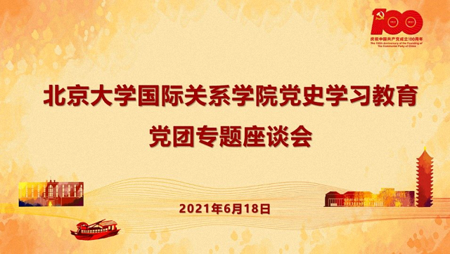 2021年6月18日下午,北京大学国际关系学院党史学习教育党团专题座谈会在学院C307教室召开。北京大学党委副书记、学院19本1班第二班主任安钰峰,学院老教授黄宗良出席会议,学院党委书记初晓波,党委副书记祝诣博,17本1班班主任祁昊天,17本2班班主任许亮,19本1班班主任赖华夏,团委书记张昕扬以及学院2017级、2019级本科生博士生联合党支部学生代表50余人共同参会,会议由祝诣博主持。