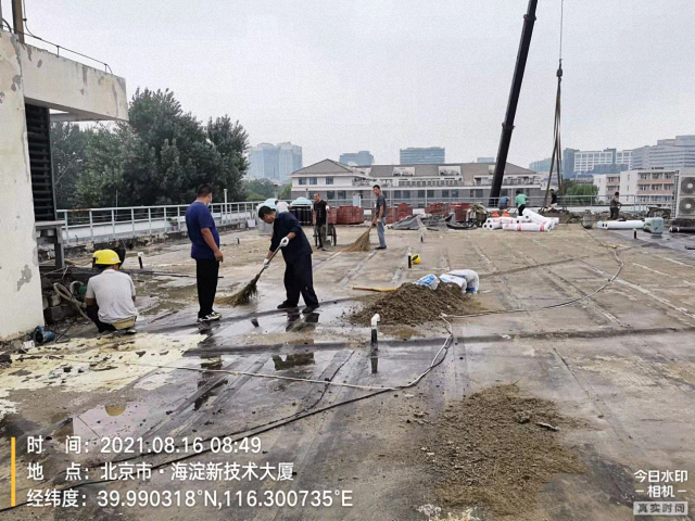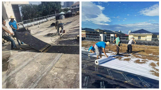 严格把控、全程监测。施工期间,行政中心全过程跟踪工程进展,首次铺贴防水层时,由于未铲除原有防水层、存在部分胶体老化,漏雨情况未完全解决。学院行政中心综合评估、反复沟通,为充分保障施工质量,返工铲除所有老化防水层,重新铺贴新防水,真正将好事办好、实事办实。