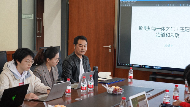 这一次的线下工作坊以师生间交流、分享为目的。首先由刘娟平和张雪君两位博士生汇报了自己的研究近况。刘娟平以《致良知与一体之仁:王阳明的治道和为政》为发言题目,介绍了“内圣外王之道”从《庄子》以来的源流和传承,及其由独尊而并行、从广大到精微的发展脉络。为了回答“王阳明的治道如何实现内圣外王”以及“王阳明为政实践和其治道的关系是什么”的问题,刘娟平将王阳明的思想演变和为政实践分为四个阶段,指出二者相互交融、彼此印证、内外促进的特点。以此论证王阳明由知行合一的内圣到满街圣人的外王,是将理想社会寄托在个人修身,将“良心是非”上升到“天理王道”的独特贡献。