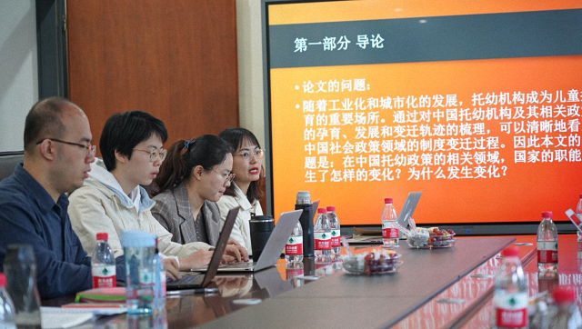 两位同学发言之后,各位老师和其他同学进行了点评和讨论,给予了宝贵的改善意见。如刘娟平的研究,老师们建议开篇即可点出研究问题,如此更加直入主题、一目了然。另外,为何中国讲知行合一,不存在社会分层,而西方的道德和政治却会分开。我们可以带着批判精神去看王阳明,才可以在前人的基础上有所创新。对张雪君的研究课题,各位老师提出,相比其他领域的国家政策变化,托幼政策的特点是什么,研究问题还可以进一步具体化,同时应注意托幼政策的具体实践,可以在写作过程中适当增加调研和案例研究。