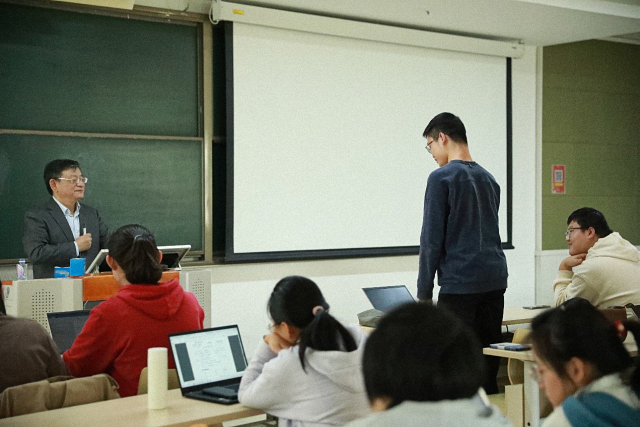 在交流互动环节,同学们踊跃发言、积极提问。唐士其在解答同学疑惑的过程中,阐述了自己对大学专业教育和通识教育的理解,提倡将二者有机结合起来;鼓励同学们追寻自己的兴趣,找到毕生所爱的事业;同时,还介绍了自己“不动笔墨不读书”的阅读方法,让同学们受益匪浅。