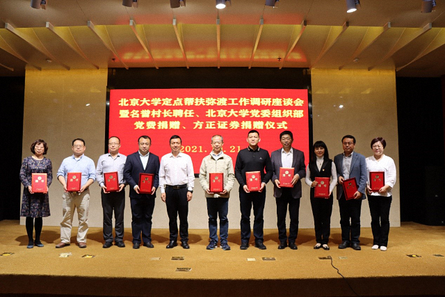 2021年10月21日至22日,北京大学党委常委、副校长张平文院士率队赴云南省大理白族自治州弥渡县考察调研,研究推进北京大学定点帮扶工作。在北京大学定点帮扶弥渡工作调研座谈会暨“名誉村长”受聘仪式上,北京大学国际关系学院院长唐士其受聘担任德苴乡新和村村委会“名誉村长”,成为“一对一”结对帮扶工作首批10名“名誉村长”之一,院长助理闫岩代表唐士其院长接受聘书。在考察调研活动期间,北京大学一行先后深入红岩镇古城村、新街镇大荒地村、弥渡一中实地走访,学院党委副书记祝诣博、院长助理闫岩代表学院随团参加活动,进一步落实结对帮扶工作。