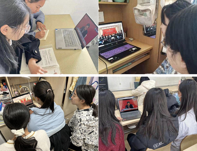 (学生党支部组织以宿舍为单位集体观看学习)