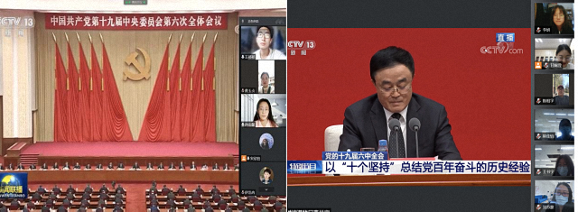 2021年11月12日上午,中共中央举行新闻发布会,介绍党的十九届六中全会精神,并围绕全会的重要成果进行权威解答。国际关系学院组织全院教职工支部、学生党支部、团支部、团学组织,以线上线下多种方式组织师生收听收看,学习领会全会精神。