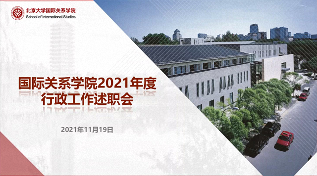 2021年11月19日下午,北京大学国际关系学院举行线上2021年度行政工作述职会。党委书记初晓波、党委副书记项佐涛、副院长董昭华、院长助理闫岩、张昕扬和学院考评委员会全体成员出席会议,学院行政中心20余名工作人员参加会议并进行述职。会议上下半场分别由党委副书记、行政中心主任祝诣博和考评委员会主任李寒梅主持。