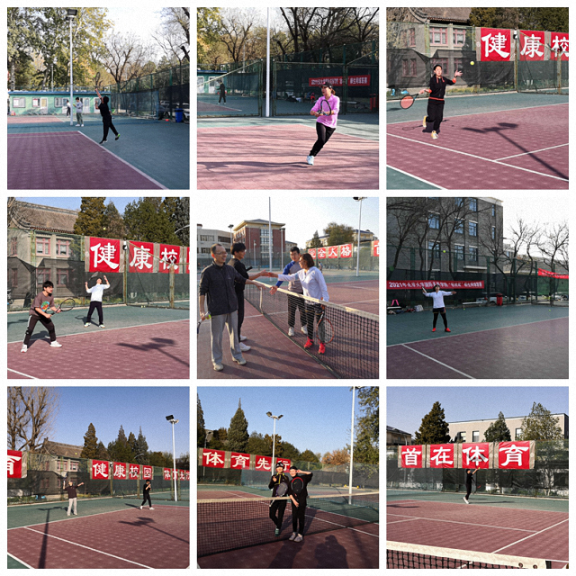 在赛前热身环节,有些同学对于网球的技巧和规则还不是很熟悉,老师们对大家进行了现场教学,给予同学们暖心的鼓励。比赛过程中,老师和同学们一起为我们呈现了一场场酣畅淋漓的精彩对决。单打比赛中的针锋相对、双打比赛中的默契配合使得比赛的观赏性大大增强。