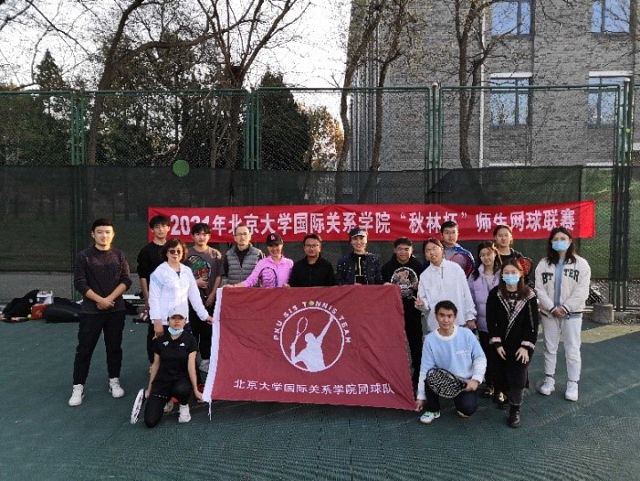 2021年11月10日,北京大学国际关系学院公众号发布“‘秋林杯’师生网球联谊赛”的报名通道,在短短五天内,众多老师同学积极报名参与。此次联赛由国关网球联队和学生会体育部共同承办。经过赛前的动员号召、物资筹备、裁判设置,本次师生网球联赛于11月14日下午在二体网球场成功举办。