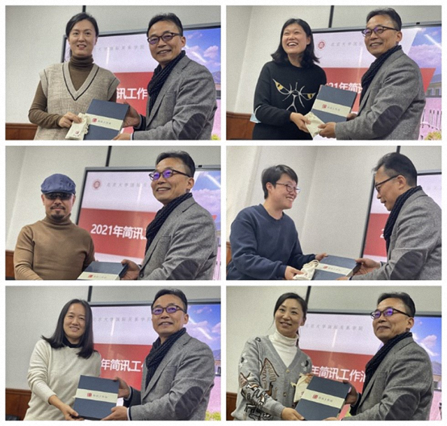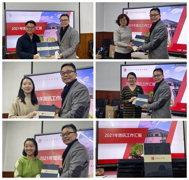 会后,初晓波为简讯编委会成员颁发了学院2021年简讯工作纪念品。