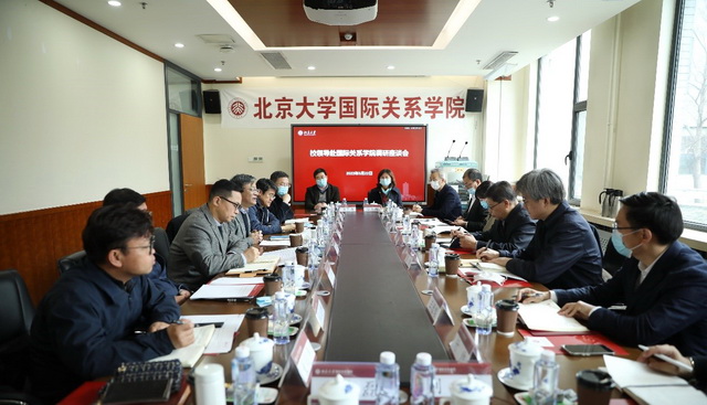 2022年3月22日上午,北京大学党委书记邱水平一行到国际关系学院调研学科建设、党的建设等工作,党委常委、副校长王博以及党办校办、党委组织部、学生工作部、研究生院、社会科学部、学科建设办公室负责同志陪同调研。国际关系学院院长唐士其、党委书记初晓波、学术委员会主任王正毅、学术委员会副主任张清敏及学院党政班子成员出席调研座谈会,会议由王博主持。