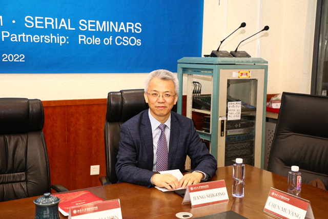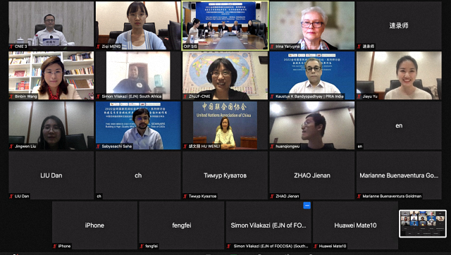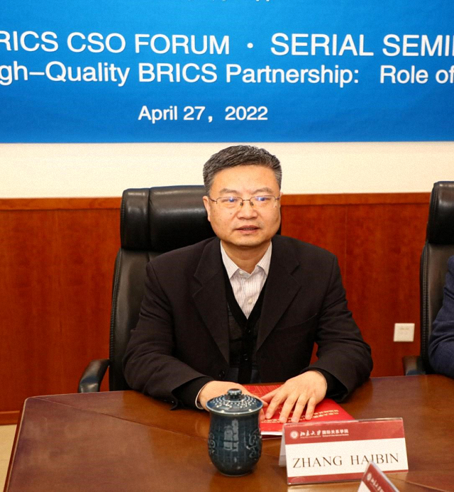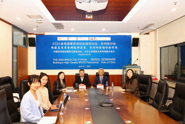 2022年4月27日,由我院与中国民间组织国际交流促进会(中促会)共同主办的2022金砖国家民间社会组织论坛系列研讨会之“构建高质量金砖伙伴关系:民间社会组织的作用”国际研讨会在北大以线上与线下结合的方式举行。来自巴西、俄罗斯、印度、南非和中国的民间社会组织的代表和专家学者围绕民间社会组织在构建金砖国家高质量伙伴关系中的作用、关键合作领域、有效合作路径和方式展开热烈深入研讨。中国联合国协会副会长、总干事胡文丽、中国民间组织国际交流促进会秘书长刘路军、北京大学社会科学部部长强世功教授、北京大学国际关系学院副院长、北京大学国际组织研究中心主任张海滨教授、中国民间组织国际交流促进会副研究员刘勇、北京大学国际关系学院国际组织与国际公共政策系副教授、北京大学国际组织研究中心副主任刘莲莲、助理教授陈沐阳、清华大学气候变化与可持续发展研究院院长助理,副研究员王彬彬,俄罗斯金砖国家研究国家委员会研究主任伊莉娜·亚里吉娜,印度发展中国家研究和信息系统(RIS)副教授萨比亚萨吉·萨哈,印度亚洲参与式研究协会(PRIA)主任考斯托夫·潘多帕耶,南非南部非洲基督教会协会经济正义网络项目协调人西蒙·维拉卡齐等出席研讨会。张海滨主持研讨会并作会议总结。