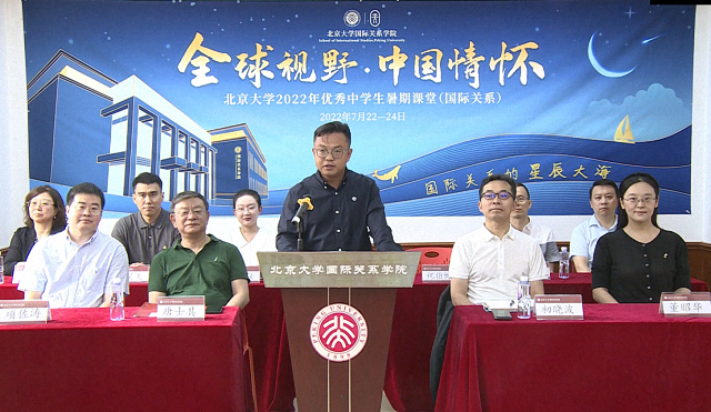 2022年7月22日上午,北京大学国际关系学院2022年暑期课堂开班仪式顺利举行。北京大学国际关系学院院长唐士其、党委书记初晓波、党委副书记祝诣博、副院长董昭华、党委副书记项佐涛、院长助理闫岩,暑期课堂各班班主任与专业教师代表节大磊、雷少华、祁昊天、徐沁仪等老师出席开班仪式。来自全国29个省市自治区直辖市175所中学的数千名同学通过燕云直播线上参加开班仪式。开班仪式由祝诣博主持。
