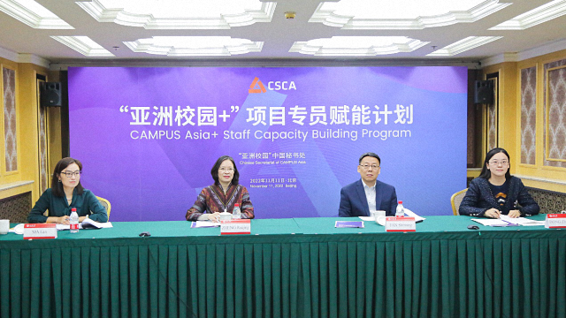 2022年11月11日,“亚洲校园”中国秘书处举办的“亚洲校园+”项目专员赋能计划培训会在北京大学举行。培训会在教育部国际交流与合作司支持下,采用线上线下相结合的方式进行,来自中日韩及东盟70所院校的约120位代表参会。中日韩三国合作秘书处社会与文化事务处、教育部学位与研究生教育发展中心研发处、教育部教育质量评估中心等多家支持单位的专家学者以及“亚洲校园”中国秘书处顾问委员会成员在线上参加了此次活动。