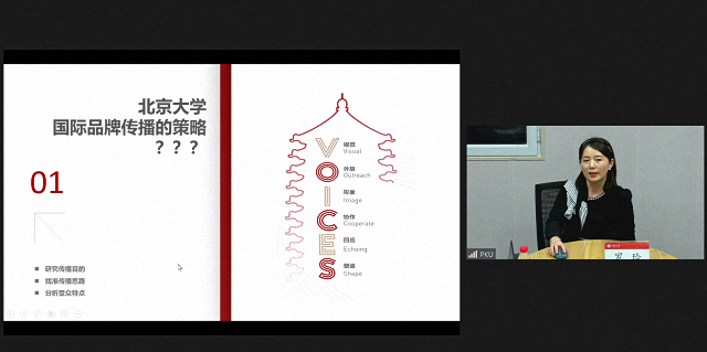 北京大学融媒体中心副主任、北京大学兰园书院副院长罗玲博士和与会代表们分享“品牌塑造与全球传播——北京大学的实践与思考”。