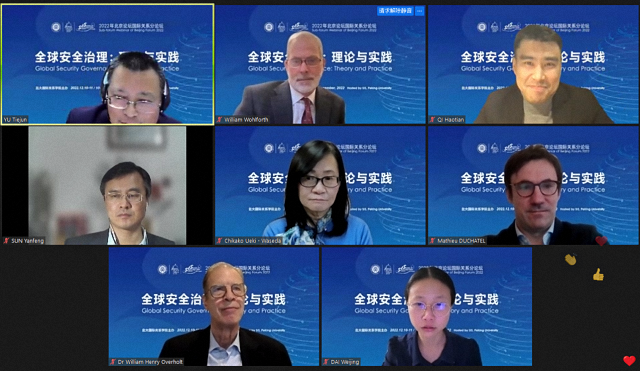 2022年12月10日-11日,北京论坛(2022)国际关系分论坛成功举办。分论坛以“全球安全治理:理论与实践”为主题,汇集来自亚洲、欧洲、美洲与澳洲的知名专家学者相聚云端,深入探讨全球安全治理面临的挑战与应对之策,共话世界形势与人类未来。北京大学副校长孙庆伟出席论坛开幕式并致辞。分论坛通过线上与线下会议相结合的方式举行,吸引了来自近600名海内外高校学生与社会各界人士在线听会。