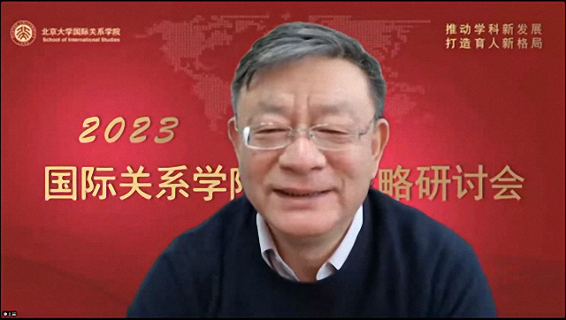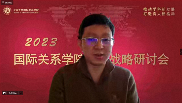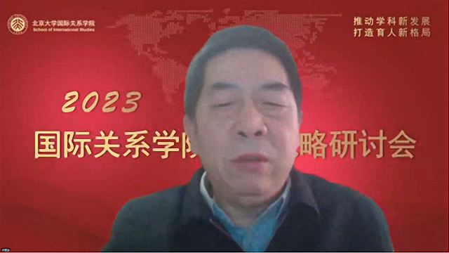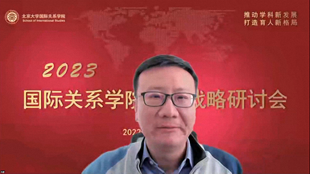 2022年12月30日,北京大学国际关系学院召开2023年发展战略研讨会,会议通过腾讯会议的方式线上举行。会议以习近平新时代中国特色社会主义思想为指导,全面贯彻落实党的二十大精神,全面落实学校第十四次党代会的各项战略部署,紧密围绕立德树人根本任务和“双一流”建设,在全面梳理总结2022年学院各项工作的基础上,深入研讨学院未来发展战略及2023年工作计划,凝聚人心、增进共识,为学院下一阶段的发展提升奠定坚实基础。北京大学学科建设办公室主任陈鹏、社会科学部部长强世功、教务部副部长刘建波等学校相关职能部门领导出席会议。学院院长唐士其,党委书记初晓波,副院长张海滨、归泳涛、董昭华,党委副书记祝诣博、项佐涛以及全院90余位教职员工参加会议,会议由初晓波主持。