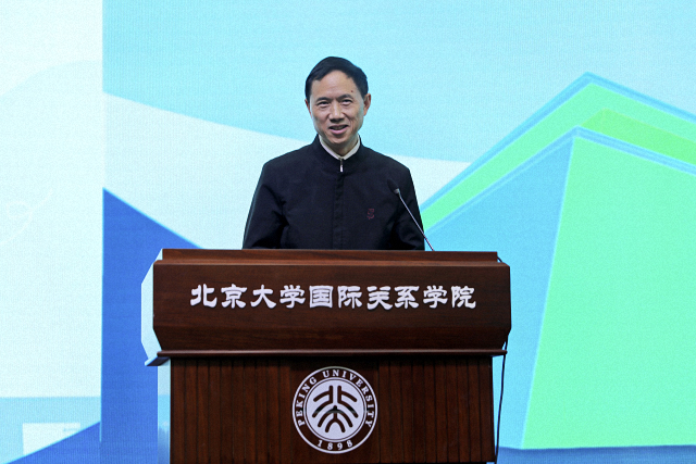 周强武在演讲中表示,现在的世界处于激烈变动的时期,面对如今的国际格局,有更多的问题需要我们去寻找答案。他和同学们分享一些人生建议。第一,永葆青春活力,怀揣北大人的自信,从容实现个人价值;第二,练就过硬本领,晕染“文化人”的情怀,始终心怀国之大者;第三,提升社交的品质,发挥国关人的特长,妥善处理人际关系。对于当下学习生活而言,他向同学们提出两点建议。第一,全力做好知识储备,打造人生“第零桶金”,北大的求学经历让他终生受益;第二,尽量丰富经历阅历,为未来发展留出更多“五彩花径”,既寻找志趣,也培养能力。最后他寄语广大同学,我们深处伟大的时代、变革的时代,北大人的信仰、文化人的个性、国关人的使命都不允许我们作为看客,要尽自己所能,贡献力量,胸怀天下,厚积薄发,我们的征途就一定是星辰大海。