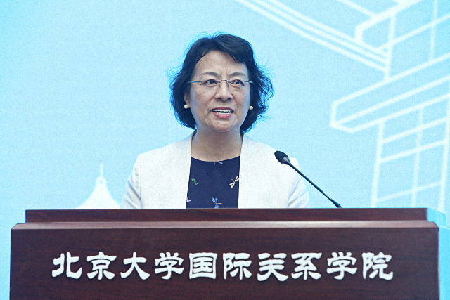 学院副教授韩华作为教师代表发言。她饱含深情地回忆了自己在国关学院求学到执教41年的过往经历,在这新老交替之际,为各位新生带来了殷殷嘱托。她提出,一是要做个有国际视野的国关人,在百年未有之大变局下,综合内外的视角,才能更加全面、平衡、理性地了解世界;二是要做一个“术”“道”兼修的学生,在掌握专业知识的同时学习为人之道、治学之道;三是尽情挖掘北大这一宝藏,北京大学不仅有学识渊博、著作等身的老师,还有藏书众多的图书馆、丰富多彩的校园文化,希望同学们能够多多探索,同时心怀学术好奇与长远理想,充分体验北大带来的无限惊喜。