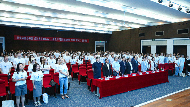 2023年9月7日,北京大学国际关系学院2023年开学典礼在秋林报告厅举行。院长唐士其,党委书记初晓波,学术委员会主席、国际政治经济学专业主任王正毅,副院长张海滨、归泳涛、祝诣博、董昭华,党委副书记项佐涛,全国政协常委、外交学专业教授贾庆国,国际关系专业主任梅然,国家安全学专业主任于铁军,比较政治专业主任汪卫华,2023级博士生班主任、学院党委人事办公室主任田田叶,2023级本科生第二班主任、北京大学政策法规研究室助理研究员柴玥儿,以及学院教师代表、全体新生共同参加了开学典礼。典礼由党委副书记张昕扬主持。