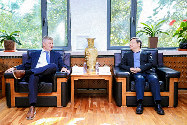 2023年10月21日,联合国原副秘书长、联合国环境规划署原执行主任,现任“一带一路”绿色发展国际联盟主席、副理事长埃里克·索尔海姆到访我院。学院院长唐士其与其座谈交流。埃里克·索尔海姆的随行人员欧亚研究中心副主任、中国事务首席代表颜瑞,欧亚研究中心人文交流中心副主任马坎,学院副院长张海滨、科研办公室主任王雨濛等参加会见。