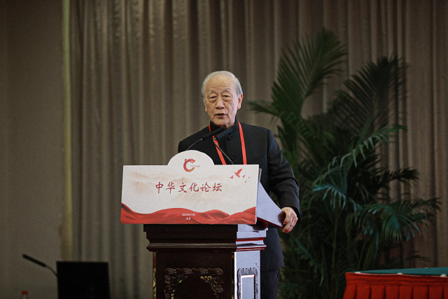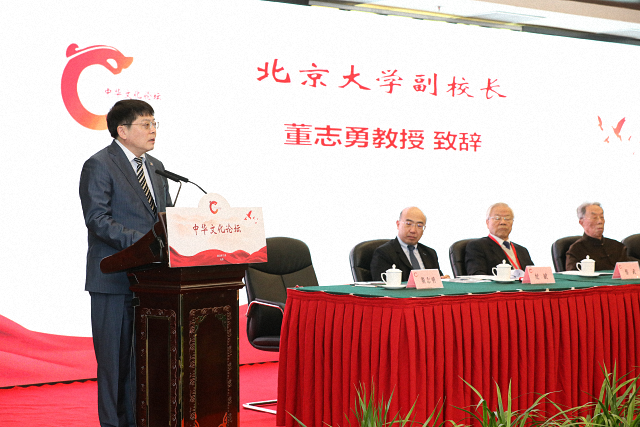 纪斌代表中华全国台湾同胞联谊会会长郑建闽在致辞中指出,中华文化论坛是北京大学推动两岸文化交流的重要平台,是受到两岸思想界、学术界、文化界高度认可的文化品牌。本届论坛以“中国式现代化与中华文化复兴”为主题,充分体现了中国式现代化的一个突出特色就是物质文明和精神文明相协调的现代化。他表示,通过广泛深入的研讨交流,从中华文明中汲取智慧,思考在文化繁荣兴盛中实现中华民族伟大复兴,探讨如何增强中华民族凝聚力和中华文化影响力,具有十分重要的意义。他强调,我们所追求的国家统一,不仅是形式上的统一,更重要的是两岸同胞的心灵契合。中华文明的包容性,是实现高质量统一的内在保障。全国台联致力于推动两岸文化交流,促进两岸同胞心灵契合,将继续加强与北京大学合作,办好中华文化论坛,促进同胞以心相交,加深两岸相互理解,增进两岸互信认同,凝聚起实现中华民族伟大复兴、推进祖国和平统一的精神合力。