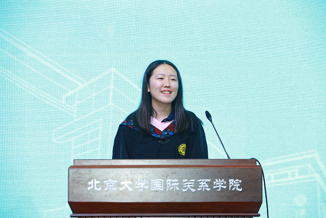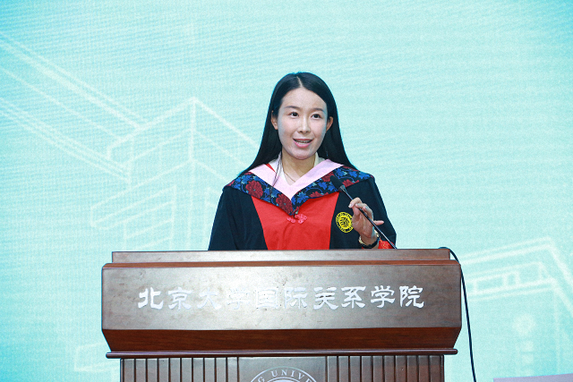 2024届博士生代表于子涵分享了她求学时光的思考与感悟。在时代的多重困境下,研究者正在经历机遇与挑战并存的变革,并且面临着现实与理想、实践与理论、变动与坚守、科技与人文之间的挣扎。经过四年的沉淀与学习,她领悟到科研的宏伟意义在于推动人类知识的前进,让知识火炬永不熄灭、代代相传。北大国关为青年研究者提供自由探索的环境,助力她在热爱的领域耕耘,为此她深感幸运。她勉励同学们保持对科研的质朴初心,心怀家国天下,为人类的思维拓展边界,坚守人文温度。
