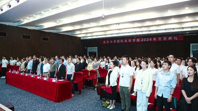 2024年9月4日,北京大学国际关系学院2024年开学典礼在秋林报告厅举行。北京大学燕京学堂名誉院长、国际关系学院教授袁明,院长唐士其,党委书记康涛,学术委员会主席、国际政治经济学专业主任王正毅,副院长、国际组织与公共政策专业主任张海滨,副院长祝诣博、董昭华,国际关系专业主任梅然,外交学专业主任张清敏,比较政治学专业主任汪卫华,国际关系学院教授罗艳华,国际关系学院副教授节大磊,学院助理教授、2024级本科生班主任徐沁仪,学院科研办公室主任、2024级硕士生班主任王雨濛,学院融媒体办公室主任、2024级博士生班主任王海媚,以及学院教师代表、全体新生共同参加了开学典礼。典礼由学院党委副书记张昕扬主持。
