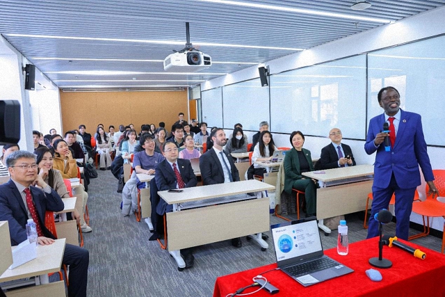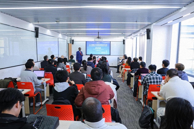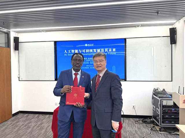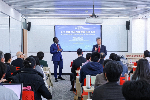 张海滨首先介绍了马瓦拉的工作履职及学术研究情况,并代表国关学院对马瓦拉的来访表示热烈欢迎。马瓦拉对国际关系学院的热情接待表示感谢,并以“人工智能与可持续发展及其未来”为题发表演讲。