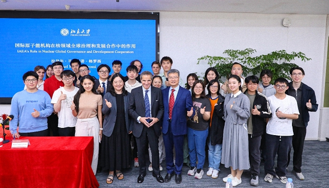随后,与会教师和中外学生围绕核不扩散机制、核聚变的发展前景、技术革新对核能发展与监管的影响、国际原子能机构的作用与面临的挑战等议题与格罗西展开积极互动,现场气氛自由而热烈。最后,格罗西与部分师生合影留念,演讲活动在现场的热烈掌声中圆满结束。