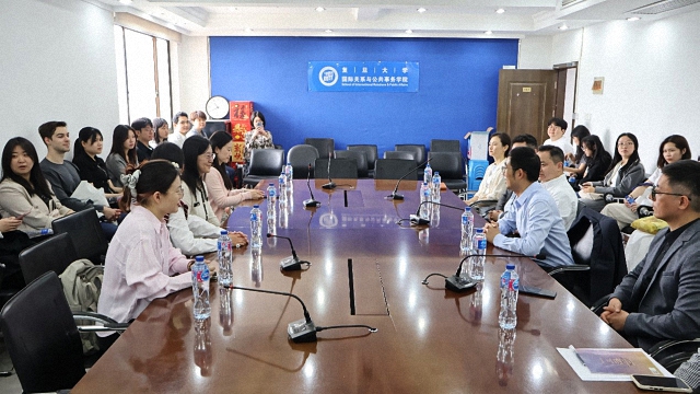 4月11日,调研团前往复旦大学国际关系与公共事务学院(以下简称“国务学院”),就“亚洲校园”项目的国际化办学经验等议题与复旦师生们开展深入交流。复旦大学国务学院院长苏长和、副院长张平、外国留学生工作处招生科科长张向荣、“亚洲校园”项目执行主任李寅等领导及复旦大学“亚洲校园”项目学生代表参加了本次活动。