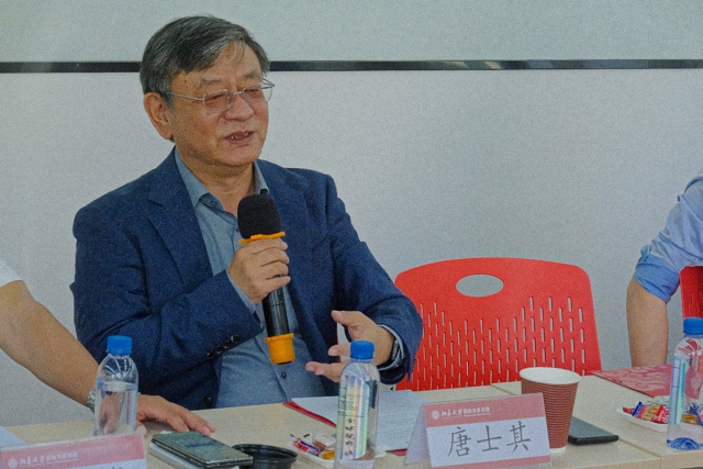 下午2时,研讨会在国关C201会议室正式开幕。唐士其在致辞中对校内外嘉宾表示热烈欢迎。他指出,本次研讨会是学校“科技创新年”大背景下促进跨学科交流的一种全新尝试,是以网球运动为媒介搭建国际关系学院与不同学科交流互动、推动产业融合创新的全新平台。他表示,有热爱就有一切,正是对网球的共同热爱,让来自各行各业、不同学科的同仁齐聚一堂。人是一种可能,网球同样蕴含着无限可能。他期待,在挥拍切磋中促进对专业的理解、深化对国关的感情、搭建跨学科对话合作的桥梁,并预祝这次研讨会圆满成功。