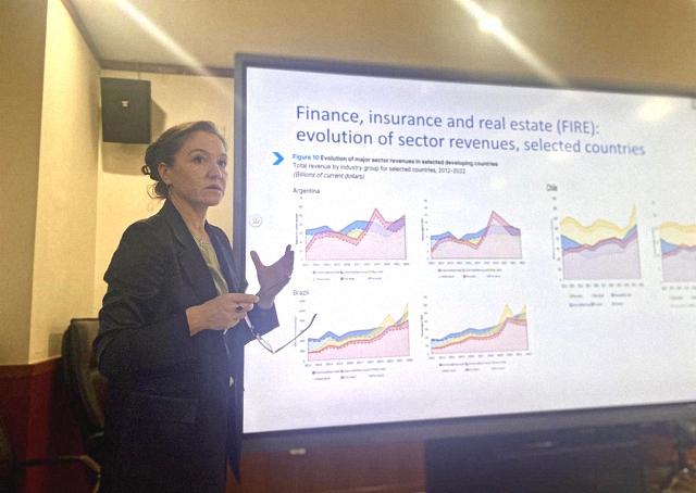 内斯维塔伊洛娃从系统性不确定性将全球经济拖入衰退着手,从经济与贸易政策、地缘政治、投资者预期的不确定性等分析了全球经济所面临的衰退风险。她指出,高不确定性对发展中国家影响尤为严重,超过一半的低收入国家处于债务困境或高风险状态。她认为,全球化没有停滞,而是正在经历转型与变革。变革中的全球化带来了贸易与产业结构的转型,制造业与服务业面临新挑战,跨国企业贸易利益不对称加剧,金融化也加剧了全球经济的不平衡。与此同时,区域合作伙伴关系的发展与新能源、人工智能等新技术变革也带来了新的增长动力。她表示,需要政策支持和有效的全球治理来应对当前挑战,以推动经济向更稳定、均衡的方向发展。