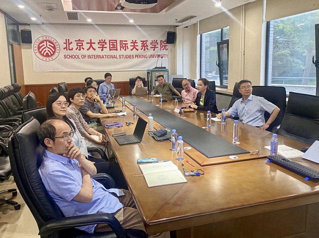 会见结束后,内斯维塔伊洛娃在学院C105会议室参加圆桌讨论,张海滨主持圆桌研讨。学院学术委员会主任王正毅,学院副院长、国际政治经济学系主任董昭华,教授丁斗,长聘副教授郭洁、陈绍锋,助理教授陈沐阳以及学院相关专业博士生、硕士生参加活动。