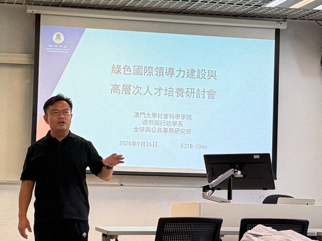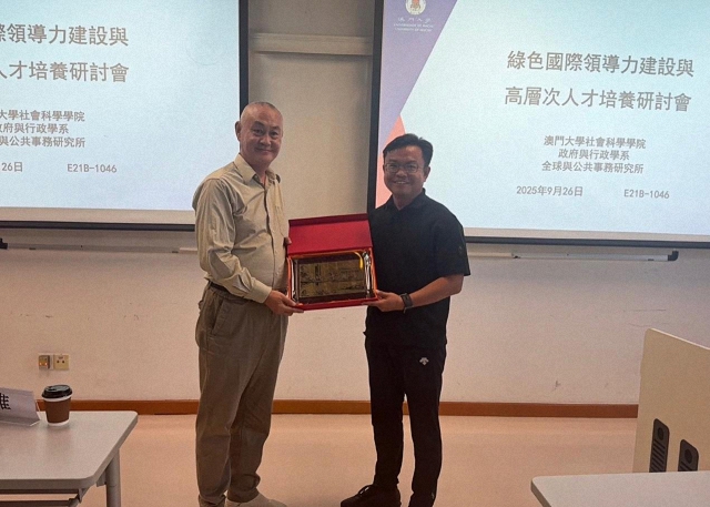 9月26日上午,“绿色国际领导力建设与高层次人才培养研讨会”在澳门大学社会科学院会议室举行。澳门大学讲席教授、全球与公共事务研究所主任潘维以《澳门大学和"小而美"的澳门》为题作开幕演讲,从澳门独特的历史文化与区域角色出发,阐释了澳门大学在跨学科研究与国际化人才培养中的创新实践。