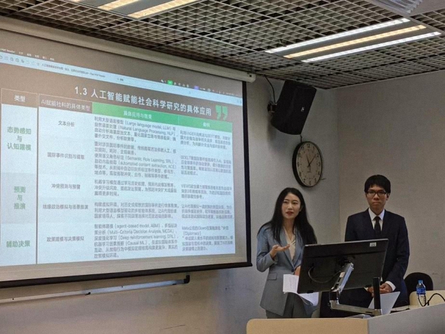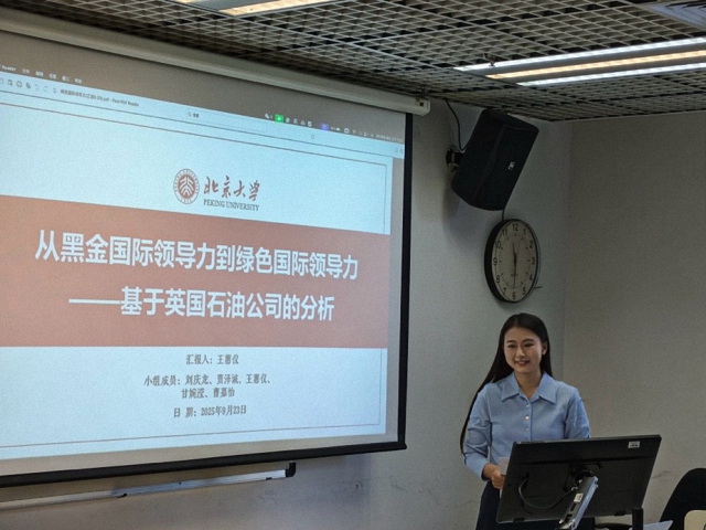 在专题研讨环节,北京大学国际关系学院师生展现了前沿的研究视野。学院硕士生谢梦、博士生李冠儒以《人工智能赋能全球治理:能力、边界与协作路径》为主题进行汇报,指出人工智能正在助力社会科学“第五范式”研究转型,人工智能在文本分析、国际事件识别、政策建模、冲突预测和地缘政治模拟等领域展现出重要潜力。学院博士生王蕙仪则以英国石油公司为例,剖析企业从化石能源向绿色能源转型的路径,构建了资源驱动型、认知塑造型、实验示范型、网络构建型和价值引领型五维领导力分析模型,对企业优势与不足进行了系统性剖析。这些研究不仅体现了学院在交叉学科建设上的积极探索,更为绿色国际治理的理论创新提供了青年智慧。